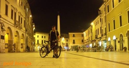 Podvečer v menším městě Lonigo na náměstí. Celý den strávený pohybem v pahorcích severovýchodně od tohoto města.