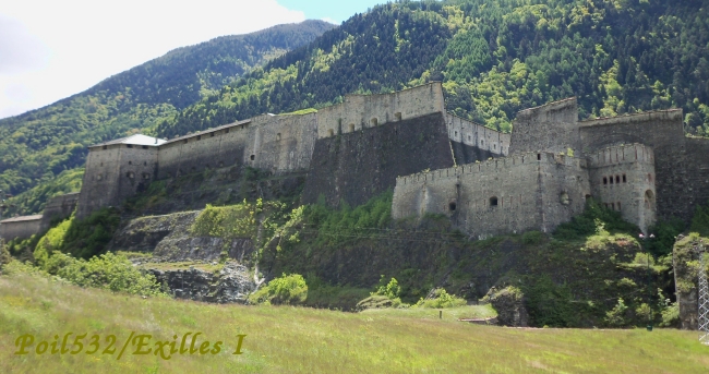 Pevnost Exilles v Itálii mezi Susa a Oulx. Z dálnice není dobře vidět. Dojedete k ní po SS24(strada statale).