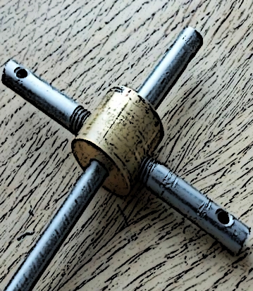 Spínací osa je železná hlazenka. Vnitřní plocha ventilu je mosazná trubička roztemovaná na koncích. Podobně lze vyrobit axiální ložisko a místo mosazi použijeme slitinu funkční plochy pístu. Stejnou věc jsem viděl i na obrázcích parního motoru p. Strakerleho na axiálním ložisku "hranatého" válce ve vrstvené impregnované překližce.